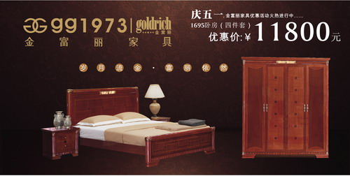 优惠力度:为答谢社会各界多年来对金富丽家具的厚爱,即日起开展优惠酬宾活动。凡购买金富丽家具1695卧房(四件套)系列,仅需11800元人民币,详情可莅临各金富丽专卖店垂询。