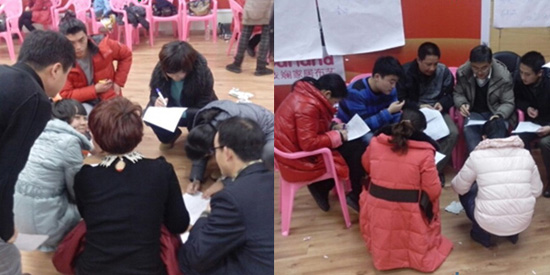 蝶依斓家居、开开木门、好来客衣柜等九大品牌的学员们积极投入讨论 诚信连锁机构对人才的培育非常重视,为快速提高员工的销售技能,在连锁机构成立当天,组织了《株洲诚信连锁首届销售精英培训研讨会》,特别重金邀请中国首席建材家居砍价师武明老师为连锁机构蝶依斓家居、开开木门、好来客衣柜等九大品牌的学员们做了精彩的销售培训,在培训中,武明老师以幽默的授课方式一次次将培训推向高潮,现场掌声不断,氛围相当活跃,据受训员工反馈,效果非常好,都使自己从中得到提升。此次培训活动为期三天,在邀请武明老师的同时还特别邀请柔然墙纸营销总经理骆军先生做销售实战培训,所有学员的学习热情非常高涨。 此次的培训研讨会只是一个开始,在未来,诚信连锁机构将重点对人才进行培育,为各个品牌培训一批批专业的销售精英,同时也为客户提供更为专业的服务。