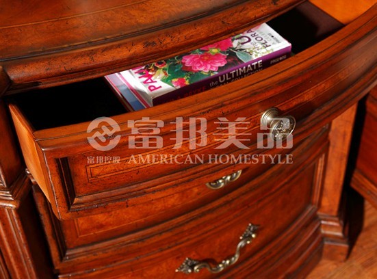 经典美式家居,庄重、自然,无处不在的装饰纹样成就了奢华的气质,带来的不仅是生活方式的解读,也是现实生活的生动呈现。富邦美品家具沉稳大气的外形,流畅的动感线条,精细的局部雕花,延用古典美式家具的做旧工艺,营造一种岁月磨砺过的痕迹,彰显材质,迎合人们怀旧之情,与向往自然的内心渴求。 相关品牌链接: 富邦美品是宁波富邦家具有限公司旗下品牌,创建于1952,专业生产高端美式家具,现拥有维帝、格林堡、维也纳风情、雅美居、奥利赛、梅赛、格林童话、莱洛克八大子品牌。宁波富邦家具有限公司是中国500强企业——富邦控股集团(下辖:沪市A股上市公司、富邦矿业、富邦地产、富邦酒店、双鹿电池、埃美柯、新乐电器、“八一”男篮俱乐部等著名企业)的全资公司。
