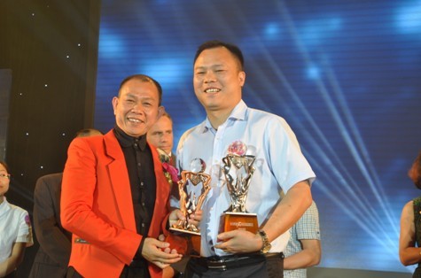 香港家私行业协会主席黄进宝为富邦美品家具营销公司总经理蒋建华(右一)颁奖 庆典上,各界嘉宾共同回顾了十五年来家具行业飞速发展的历程,组委会表彰了为名家具展十五年辉煌成就作出了重要贡献的人物和单位,同时颁发了家具系列各项奖项。富邦美品家具凭借前沿的设计、精湛的工艺和深厚的美式文化底蕴,一举荣获卧室系列银奖、欧式古典系列铜奖。这也是富邦美品家具在继第29届国际名家具展览会荣获“卧室家具系列优秀奖”后的又一殊荣。