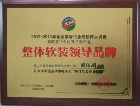 蝶依斓荣获2013年整体软装领导品牌称号 |