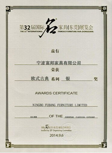 富邦美品第32届国际名家具(东莞)展荣获“欧式古典系列银奖”