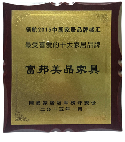 2015年1月,在由网易家居冠军榜评委会举办,刚刚落幕的“领航2015中国家居品牌盛汇”典礼中,富邦美品家具通过网友投票方式,以绝对优势荣获“最受喜爱的十大家居品牌”。